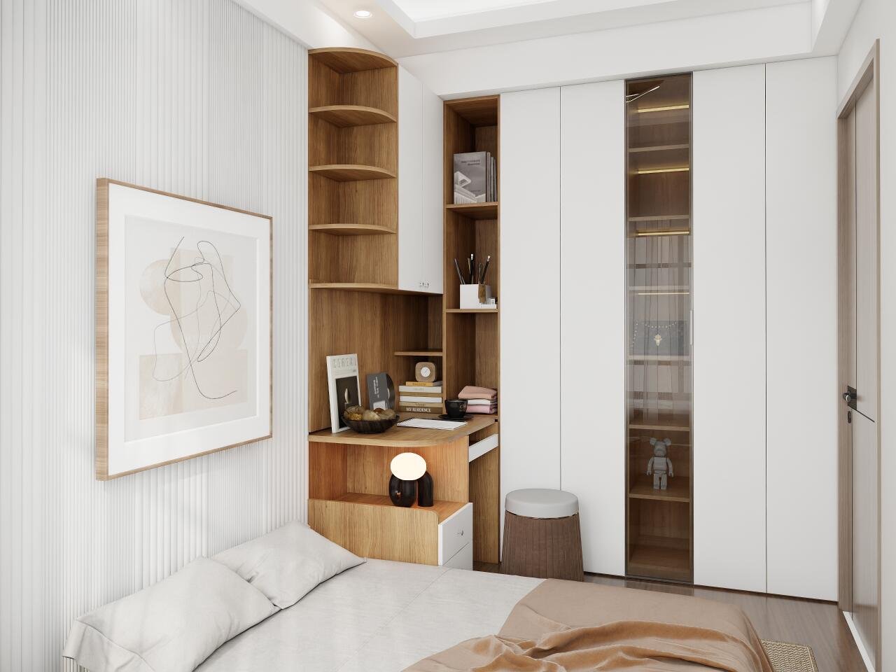 - 質感細節:床品揀奶茶色棉麻料,配原木色床頭櫃,同衣櫃木紋襯到正,成體溫溫暖暖唔冰冷,減少都市生活嘅緊張感。