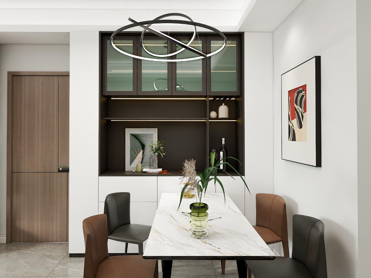 - 餐邊櫃:同電視牆櫃「同色系襯到絕」,玻璃門櫃身展示酒杯同餐具,底部抽屜收餐紙、備用碗碟,中間留空做「水吧區」,擺咖啡機同燒水壺,解決細單位「冇吧台」嘅煩惱。